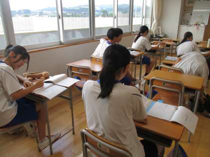 3年生は、教室で団活動の傍ら、学習に励んでいる生徒もいます。