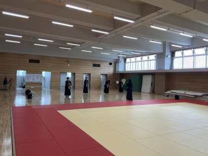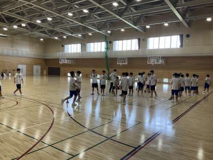 スポーツのニワでは、陸上競技部、体育館では男女バスケットボール部、武道場では剣道部が活動しています。基本練習を中心に頑張っています。