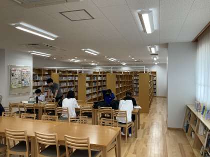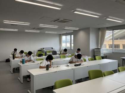 1〜2年生、3年生がそれぞれ夏休みの課題に取り組んでいます。お互いに教え合い、効率よく進んでいます。