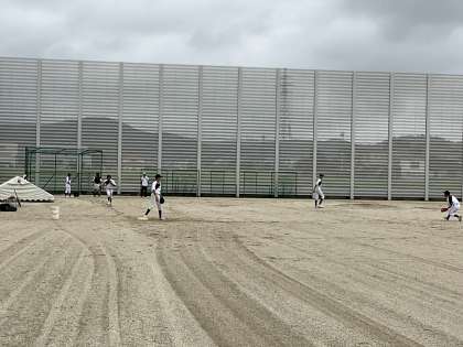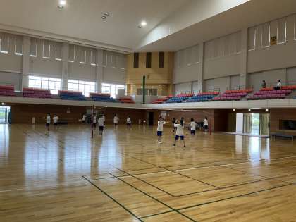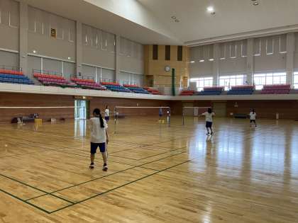 女子バレーボール部、女子バドミントン部は八尾アリ−ナで活動中、野球部はグラウンドで練習に励んでいます。