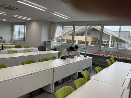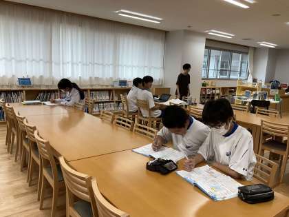 コンピュータ室、図書室今日から、学習室として開放しています。早速、今日から利用する生徒が来ています。