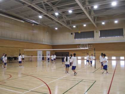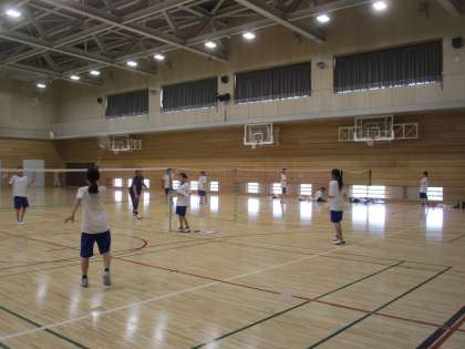 体育館では、バレーボール部とバドミントン部が活動しています。