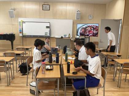 英会話をしながらALTの先生方とランチタイムを楽しんでいます。丸1日英語で過ごす貴重な経験、海外にいるみたいですね。参加した皆さんは、超ラッキー!これこそ、チャンスをつかむ!
