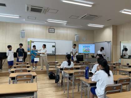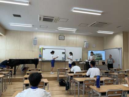 サマーキャンプの最後は、英語劇に挑戦です。2つのグル−プに分かれ『Little Red Riding Hood』『The Three Little Pigs』をそれぞれ練習して演じました。参加した生徒たちは、一日でとても英語の力がアップしました。ALTの先生方ありがとうございました。
