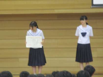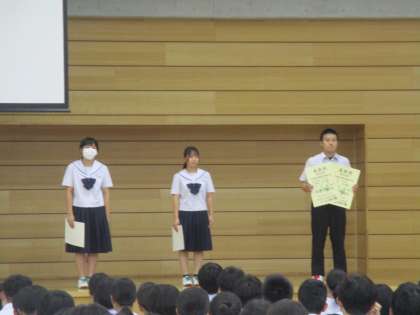 中学生の主張富山県大会「審査員特別賞」  の5名の受賞の報告がありました。
