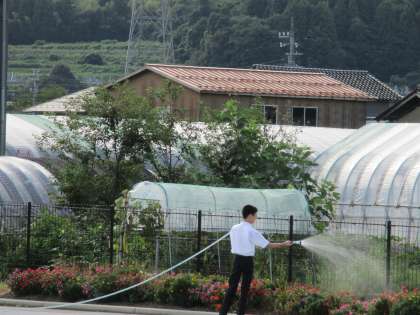 花壇の水やり、挨拶運動が続いています。素晴らしい!