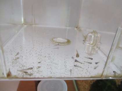 1年1組のグッピー一族は、夏休み中職員室に里帰りしていましたが、2学期が始まり、教室に戻りました。