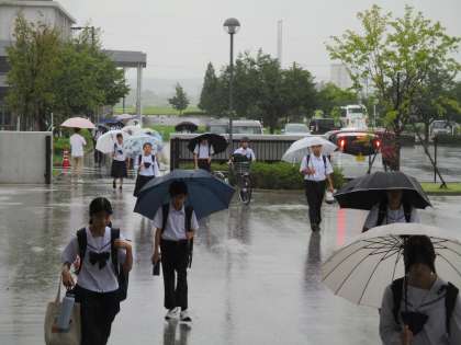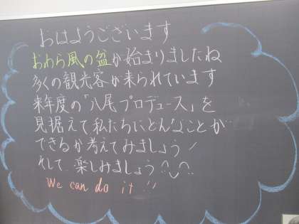 八尾地域は、「おわら」モード真っ只中です。昨夜も遅くまで踊っていた生徒もおり、眠そうです。今朝は、登校時刻めがけて雨が降っています。残念ながら「八尾をプロデュース」は明日に延期となりました。