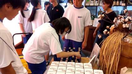 玉旭酒造は、準備が整い次第オープンします。商品の陳列も任されています。商品のポップを考えています。完成したら販売開始です。