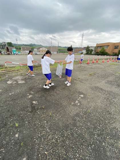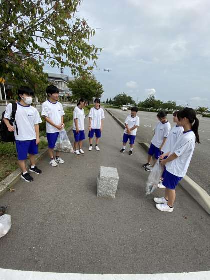 ボランティア部は、シャトルバスの発着場所である八尾総合病院と八尾コミュニティセンター周辺のゴミ拾いをしています。