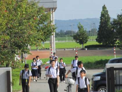 八尾町の大きな行事「おわら風の盆」が終わりました。学校周辺にはまだ県外ナンバーの車やキャンピングカー、テント等があります。生徒も眠たい目をこすりながら登校してきました。