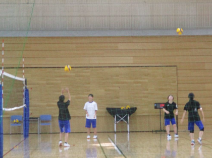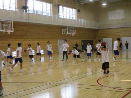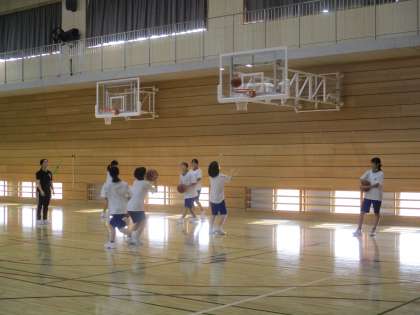 体育館では、バスケットボール部、バレーボール部が活動しています。