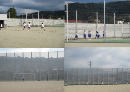 夕方になると風が涼しく、秋を感じますね。さわやかな気候の下、ソフトテニス部、サッカー部、野球部、陸上競技部が活動しています。