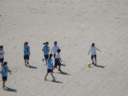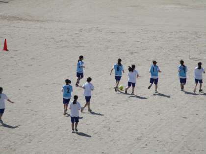 2クラス合同でゲーム形式でサッカー競技に取り組んでいます。