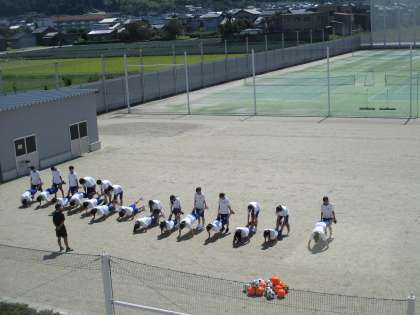 手押し車や腕立て伏せ等、体力づくりをしています。