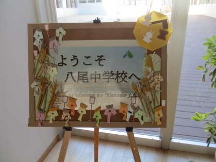 先日紹介した職員玄関前のウエルカムボードに続き、生徒玄関前のウエルカムボードもめっきり秋らしくなりました。