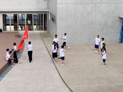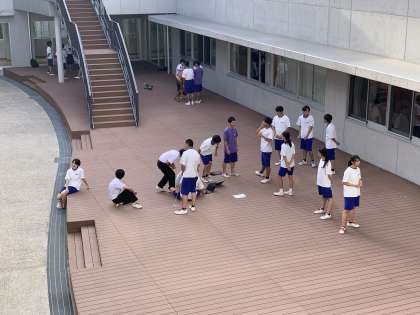 暑さが厳しい1日になりました。八中生はとても元気です!!中庭では団活動を行っています。金曜日から始まる団練習に向けて、振り付けの確認です。
