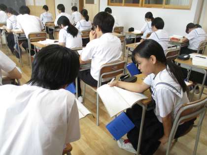 「故郷」を読み深めています。主人公との関係性が分かる箇所に線を引き、ペアで見合っています。