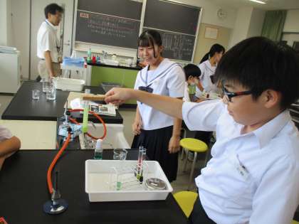 実習生の先生の公開授業として行いました。デンプンがだ液によって麦芽糖等に変化していることを確かめるために実験を行いました。