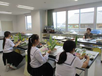 地域の講師の先生からご指導いただく日です。今日のテーマは、「葉物の組合せ」です。