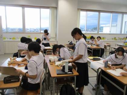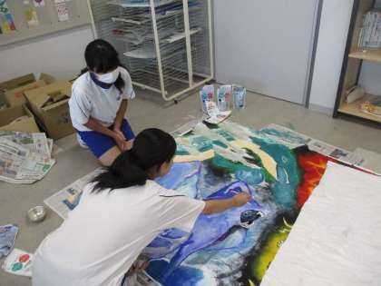 美術部は、それぞれ作品制作に取り組んでいます。その傍らで、体育大会のデコレーション制作、美術の授業の作品完成に励んでいる生徒もいます。