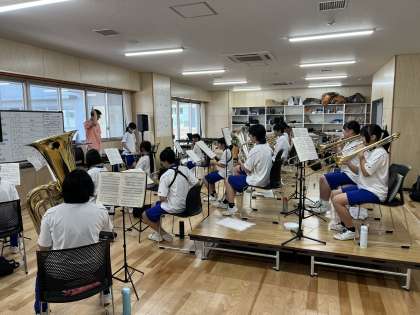 体育大会や文化活動発表会での演奏に向けて練習しています。今日は外部から指導者もお招きし、技術アップを目指して頑張っています!!