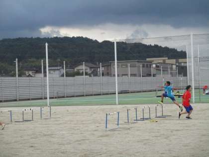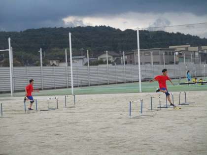 陸上競技部は、ハードル走の練習をしています。カモシカのように駆け抜けて行きます。