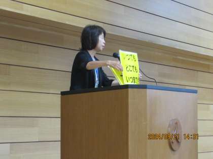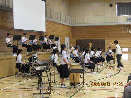 校長、生徒会長の挨拶の後、吹奏楽部が演奏を披露しました。ノリノリの3曲で、小学校6年生の皆さんや保護者の皆様が手拍子で楽しんでいただきました。