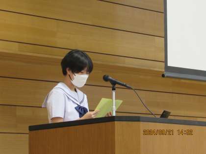 続いて、小学校6年生と一番近い位置にいる1年生が八尾中学校で過ごした半年を振り返って感想を発表しました。