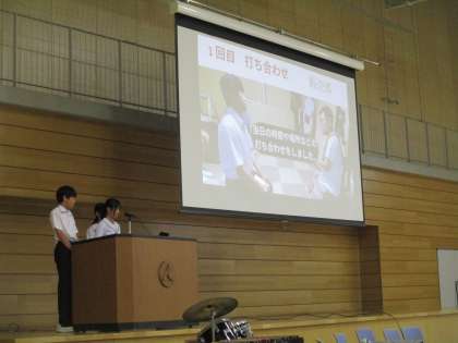 実際に活動をした生徒だからこそ語れる内容で、6年生の皆さんに質問したりしながら説明をしました。6年生の皆さんは興味深そうに、ワクワクしながら話を聴いていました。
