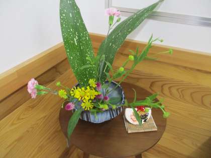 華道部、講師の先生が生けてくださった花です。
