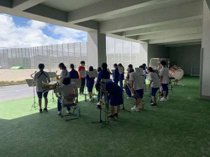 明日に控えた体育大会に向けて、最後の練習です。あいにくの雨なので、ピロティで本番さながらで練習しました。また、金曜日には高善寺橋の開通式も控えています。本番通りの進行で流れを確認しました。
