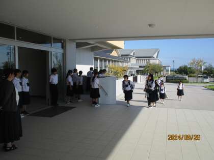 1学年の「挨拶運動」の取組もあり、生徒玄関前ではさわやかな挨拶が飛び交っています。