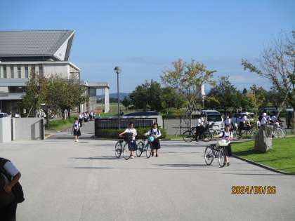 自転車通学生も、決まりを守って通学しています。