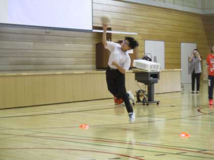 ハンドボールに初めて挑戦した生徒のシュートもなかなかでした。