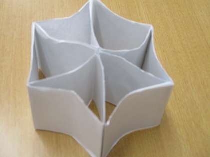 「ハニカム構造」を紙で作っているところです。折り方と組合せ次第で、象が踏んでも壊れない?強い構造になります。