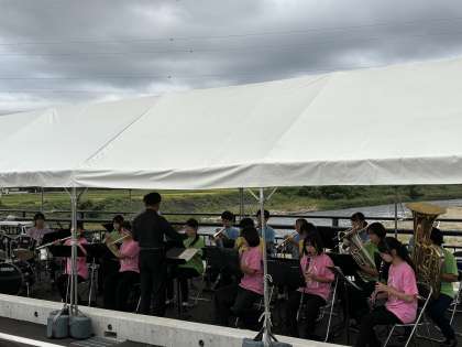 吹奏楽部は、多数の来賓の前でお祝いの言葉を述べ、2曲演奏しました。