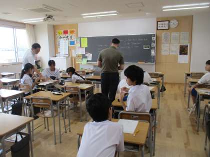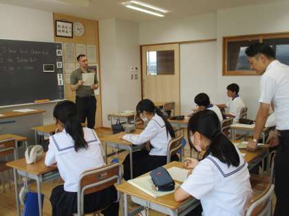 ALTのJ先生が部活動も担当してくださっています。生きた英会話を楽しんでいます。