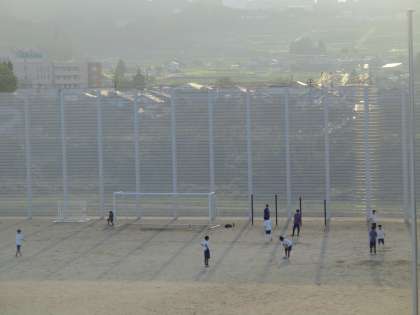 夕日がグラウンドに注ぐ中、練習に励んでいます。新人大会まであと10日あまり。気合いが入っています。