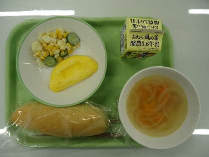 今日はスープの中に貝殻の形をしたマカロニが入っています。