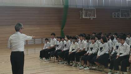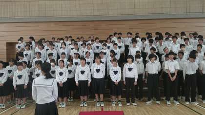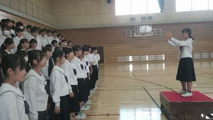 その後、学年合唱の「翼をください」を実際に歌い、音楽科の先生方から、よりよくなるように助言をいただきました。