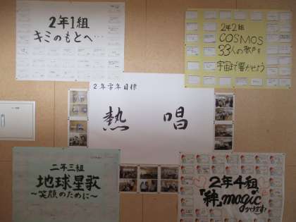 2年生の廊下には、各クラスのスローガンが掲示してあります。