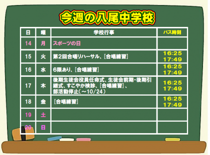 10月13日(日) 今週の八尾中学校