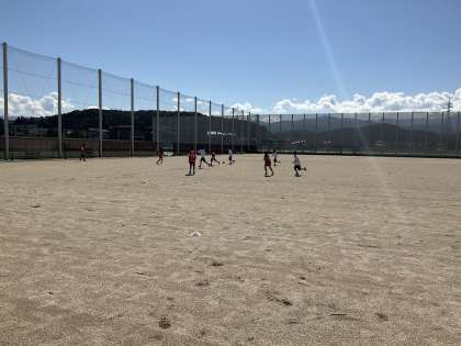今日は他の部は大会のため、グラウンドを広く使用していつもとは異なる練習をしています。ゲーム性を取り入れた内容で、体を動かす練習です。新鮮な感じが漂っています。