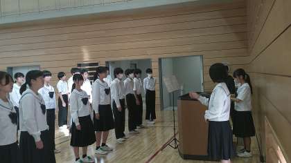 10月15日(火) 2年生 合唱コンクールリハーサル その3 公開日 2024/10/15 更新日 2024/10/15 八尾中学校のページ 1度目のリハーサル後、各学級で練習しました。指揮者が中心となり、よかった点・修正点を分かりやすく伝え、2度目の通しリハーサルに生かすことができました。 〈写真 上〉4組 〈写真 中〉3組 〈写真 下〉練習の様子