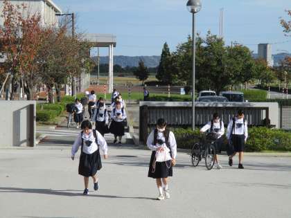 新人大会後、三連休後の朝です。校庭の木々が少しずつ色付いてきました。