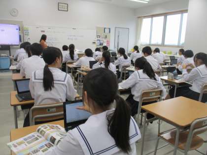 写真下は、理科の授業の様子です。血液の働きについて学習しています。