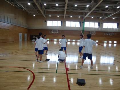 写真上は、保健体育の授業の様子です。ダンスの振り付けを体を動かしながら考えています。