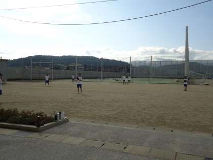 上:保健体育 汗ばむ気温の中ソフトボールに真剣です。