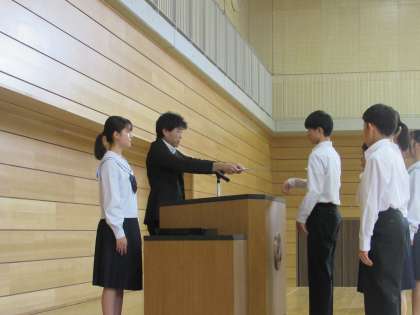 任命証が渡されるたびに、ひとりひとりに全校生徒から温かい拍手が送られていました。